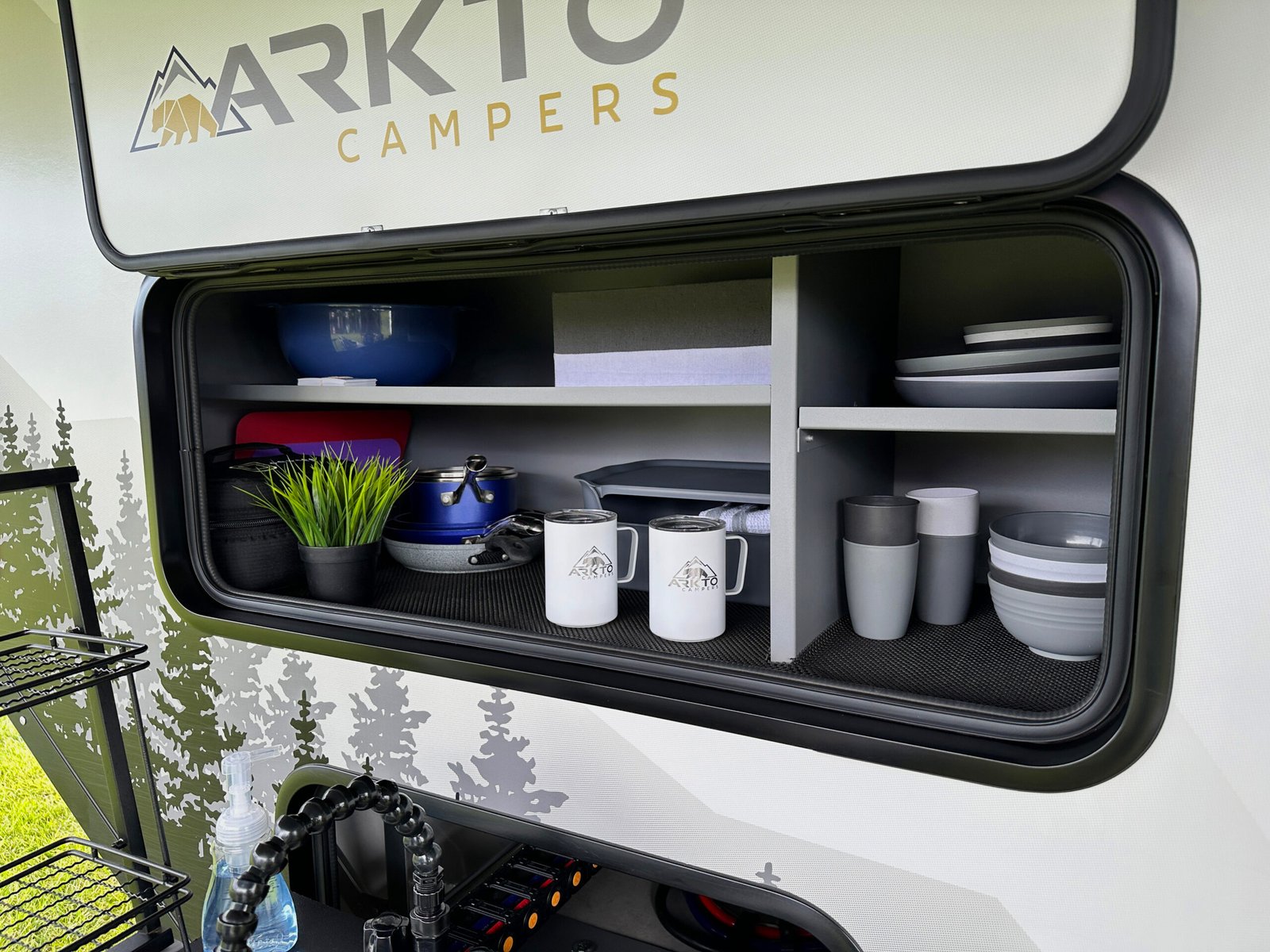 Class-leading storage in a compact overland trailer. Large exterior compartments keep your gear accessible, while the interior cabinets and drawers offer ample space for your clothing and personal items — more than most trailers in this size class.