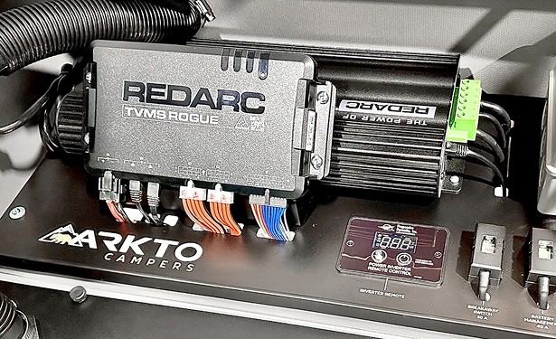 A REDARC Rogue and Manager battery management system, capable of supporting up to 960Ah of Lithium and 1,000W of solar, for extended off-grid travel.