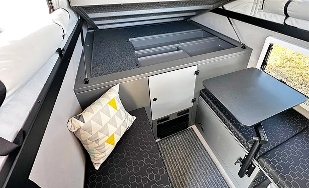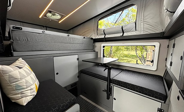 Its smaller footprint makes navigating tight trails simple, while the interior delivers real comfort with a queen bed and a dedicated space to sit and enjoy dinner.
